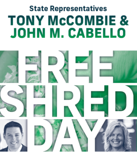 The lawmakers recommend residents use this event as a chance to safely and securely dispose of any paper documents that contain sensitive personal information. This event is free and open to all residents of the 89th and 90th House Districts. Attendees are encouraged to limit their items for shredding to only two banker boxes as the event will end once the truck reaches capacity.