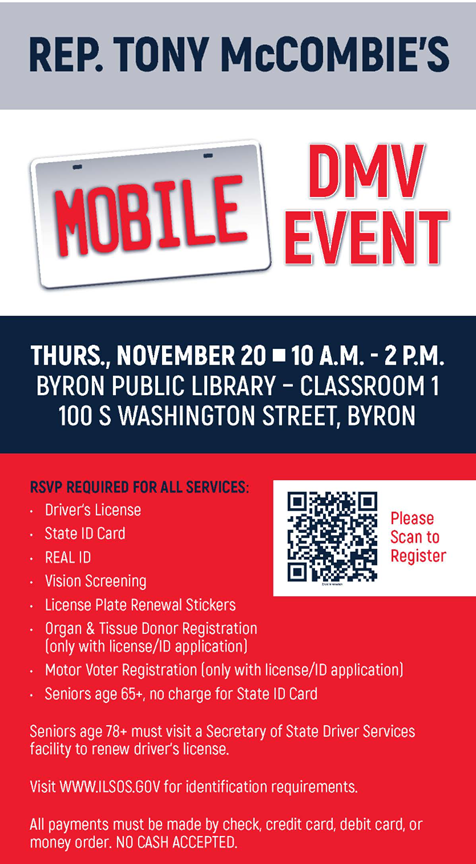 Be sure to check out our upcoming Mobile DMV event in Byron! For more information and to register, visit RepMcCombie.com.