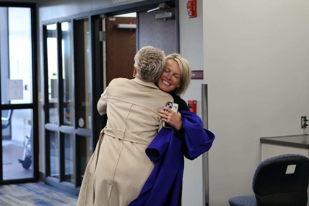 The visit began in the Welcome Center, where students greeted Leader McCombie and introduced her to President Chris Kuberski and Liz Gerber, Vice President of Student Development & Support Services. They outlined Highland’s student-first mission and the broad range of services designed to help every student succeed.